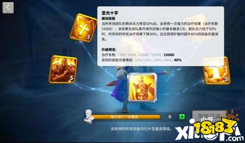 君士坦丁四号技能圣光十字先来说说好的地方,首先呢,部队兵力在低于血线,也就是打到技能效果触发要求,获得个强力治疗,并在接下来的时间,获得护盾时得到大量的技能伤害减免效果,勉强算是个强效紧急补给,强化续航,能让君士坦丁在野外有更好续航能力,而且回家能刷新冷却,还行吧?驻防建筑时会有奇效?