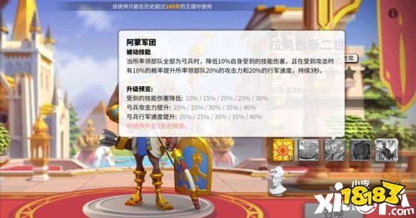 拉美西斯二世或称呼黑皮法老作为第三代弓兵统帅,具有强悍爆发,特殊伤害性质可以受到更多途径的提升强化伤害,也有不俗属性,技能伤害抗性,在野外混战和集结作战想必会有出色的战斗表现,尤其针对据点的攻坚,拉美西斯二世的特殊会对目前主流驻防版本造成巨大冲击会带来不少麻烦,不过有点要说。