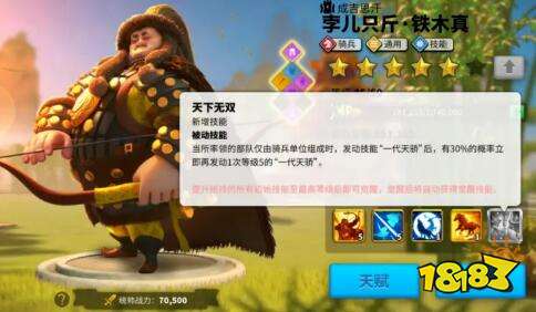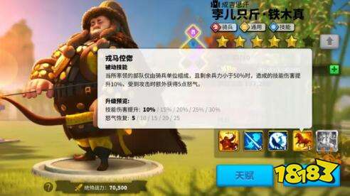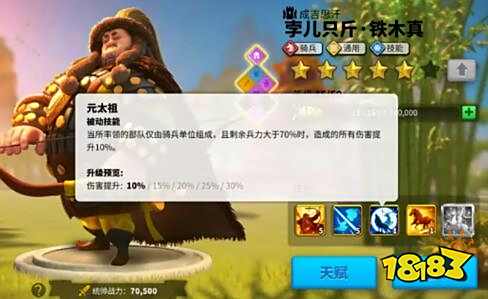 铁木真是一个高技能单体输出型的骑兵武将,可以排除掉通用天赋。