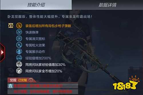 M4A1-卧龙觉醒相比没有觉醒的M4A1-卧龙提升了换弹速度,增加了技能攻击,穿透层数由一层变为两层,而且外观也更加华丽酷炫,所以这把枪是非常值得觉醒的。