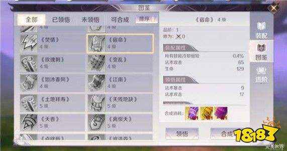 4级天书:4级的属性也很多,宿命、玫瑰刺、焚情、江南、如沐春风、天残地缺、离恨天、天香、土地拜寿等等天书,属性都很不错,玩家可以培养起来,合成消耗大量的低级天书。