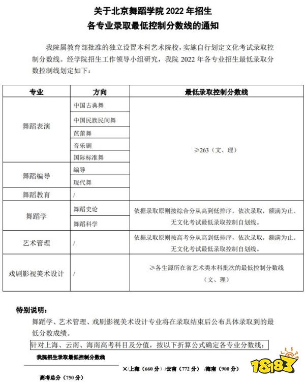 2、北京舞蹈学院舞蹈编导专业的最低录取控制线不低于275分(文理同分);