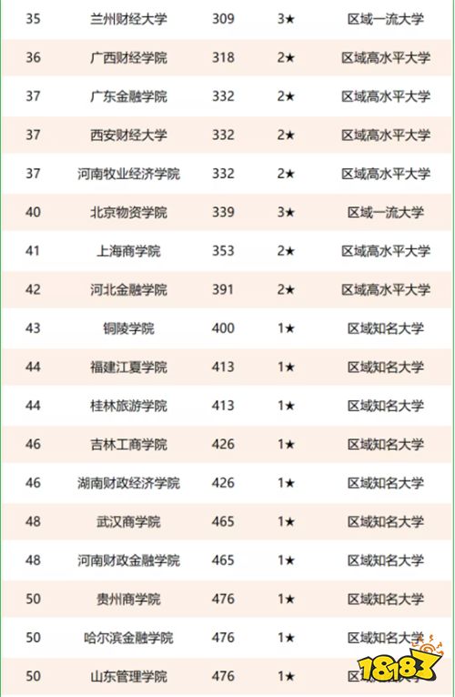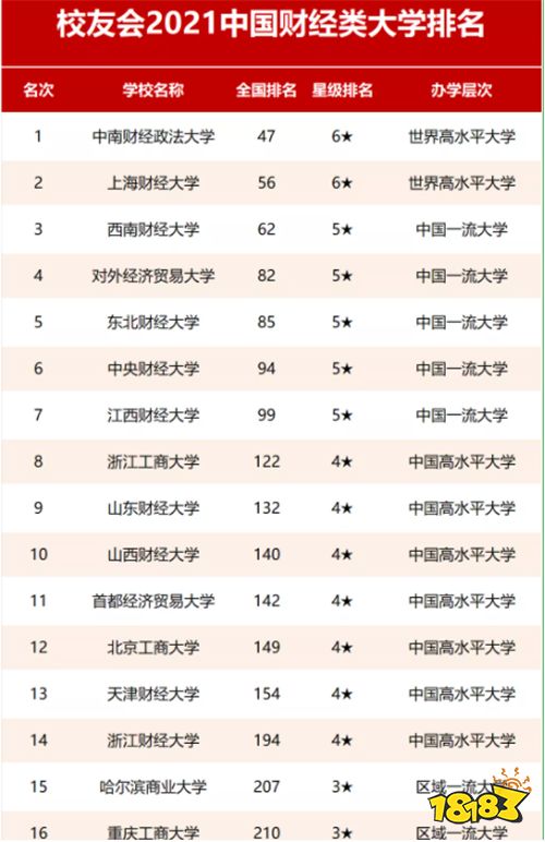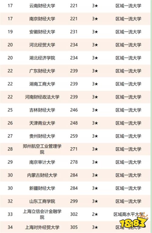 前十名分别是:中南财经政法大学、上海财经大学、西南财经大学、对外经济贸易大学、东北财经大学、中央财经大学、江西财经大学、浙江工商大学、山东财经大学、山西财经大学。
