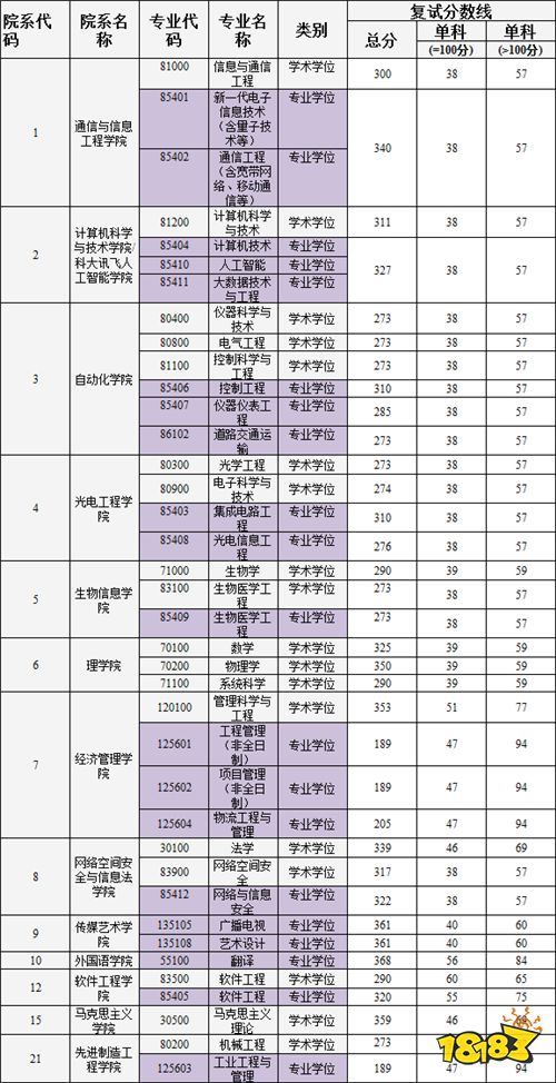 重庆邮电大学2022年硕士研究生招生专业复试分数线