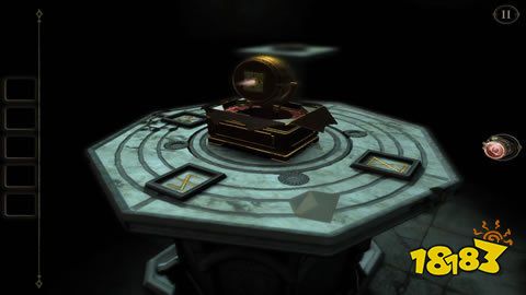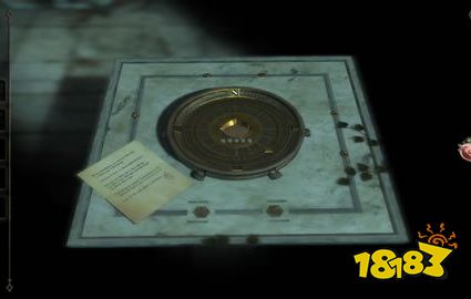 获得到圆球后,我们在回到桌子上,来到桌子的圆盘处,将刚获得的圆球放置圆盘中间,我们会发现如图所示的样子。这是我们需要密码才可以打开接下来的机关。
