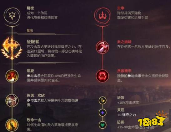 (2)副系符文:主宰+血之滋味+贪欲猎手;