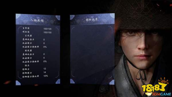 人物属性分为生命值、嗜血值、主武器、副武器、防具。玩家装备武器防具后的总属性会在状态中显示。