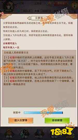 《想不想修真》游戏中11月27号更新了之后,大能遗府探索的玩法,对于级别比较低的玩家开放了,其中一个探索是——云梦泽,下面18183小编来给大家分享一下探索的攻略。