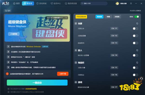超级键盘侠官方七项修改器 超级键盘侠2025最新版修改器v1.7