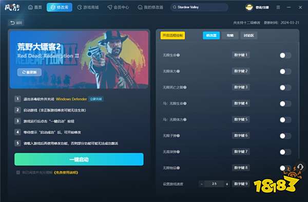 该修改器通常适用于PC平台上的《荒野大镖客2》,包括Windows操作系统下的不同版本。对于主机平台(如PlayStation或Xbox),由于系统限制,可能无法直接支持类似的修改工具。