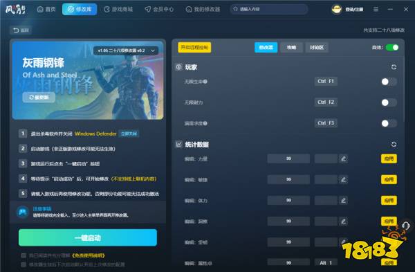 灰雨钢锋官方二十八项修改器 灰雨钢锋2025最新版修改器v0.2