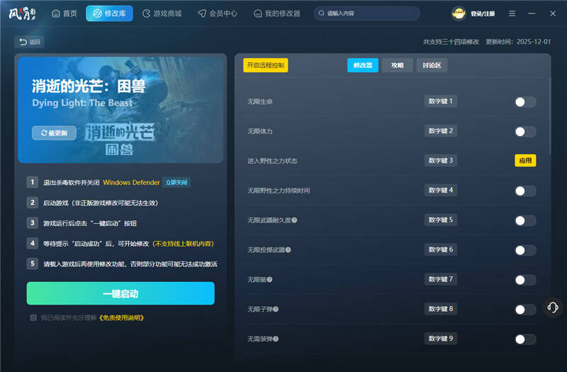 1、在初始界面能够看到目前最新的游戏修改器内容,还可以根据自己的需要进行搜索。点击下载后即可启用。