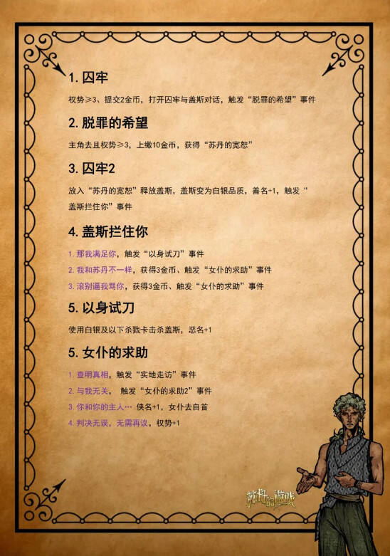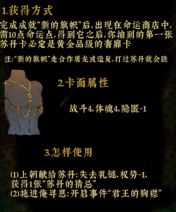 虽然每一张苏丹卡都需要花费很大代价才能完成,但玩家也可以将之视作为所欲为的机会,杀死那些罪有应得的敌人,发展禁忌的恋情,为最悖逆、最可怕的事情找到合理的借口。