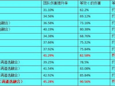 例如在一个双C平均伤害水平在25E的黄队,此时只要有一个23E的C,其团队提升率就可以直接超过表中任意一种搭配的巨龙。