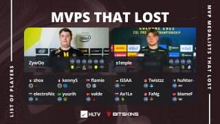 在CS:GO的赛场上,有时会出现非冠军队伍选手因数据十分突出而荣膺赛事MVP的情况,在历史上的247场赛事中,有22次HLTV MVP颁发给了败方选手,其中首个败方MVP是2014年DreamHack瓦伦西亚的shox。