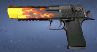 该沙漠之鹰皮肤只在csgo最早期炙热沙城掉落池中低概率掉落,当时csgo都没人玩的,目前steam交易市场上仅有不到80把,因此如果这些拥有者愿意炒一笔,完全可以将每把炽热之炎的价格炒到1000块以上。由于是地图收藏品掉落,所以既没有暗金版也没有纪念品版。