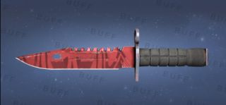 CSGOm9刺刀屠夫皮肤是一个红色为底色再附加深红色条纹的刀皮肤,常见的玄学有桃心,钻石,狗骨头,大天使等。
