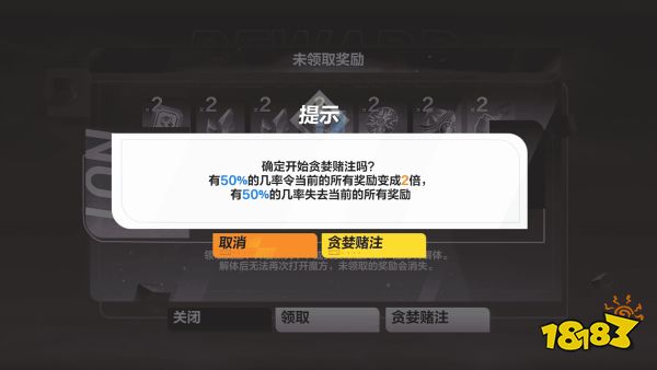 5.抽取结束时有几率触发“贪婪赌注”,选择“选择贪婪赌注”可使到手的奖励变成2倍,也可能失去所有的奖励。