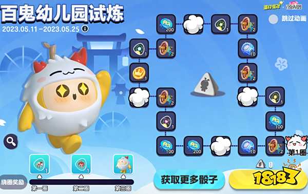 2023年5月11日至2023年5月25日期间,“百鬼幼儿园试炼”活跃活动限时开启!完成每日任务获取骰子,投掷骰子并走出相应步数,即可获得对应位置的奖励,或触发特殊事件。每完成一圈都会解锁特殊联动奖励,走完三圈完成试炼,还能免费获得联动外观“茨球”!
