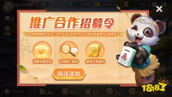 五月福利不间断,推广计划助力好运延续!《网易棋牌》推广代理招募中!《网易棋牌》是网易旗下绿色健康的地方棋牌手游,全国合集玩法地方特色十足,备受各位玩家喜爱。游戏背靠网易内部专业团队自研运营,合作有保障!