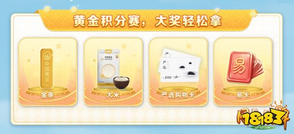 惊喜延续,赛事来袭,邀你锁定《网易棋牌》手游【黄金积分赛】!5月23日至5月28日,【黄金积分赛】畅快开赛!人满即开无需等待,两期榜单不间断,排名靠前奖励多,金条、大米、购物卡及易卡奖励通通一网打尽!牌场大神齐聚首,金条好礼抢先得!