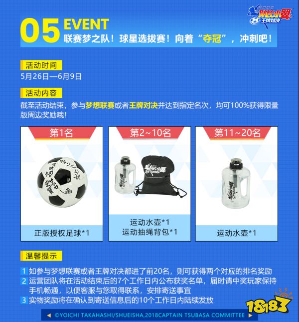 此外,本次测试不仅有虚拟奖励,更是将送出《队长小翼:王牌对决》游戏限量周边。只要积极参与游戏内容活动,以及《队长小翼:王牌对决》TAPTAP、好游快爆平台上的论坛活动,即有机会成为少数的幸运儿!