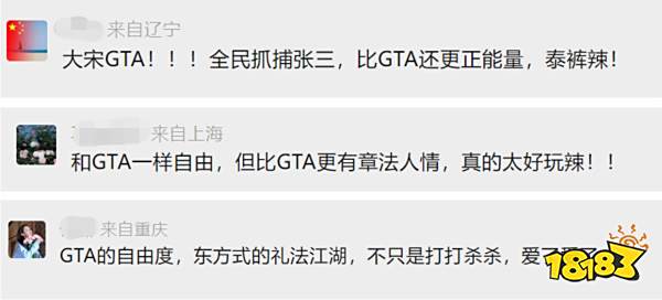 与GTA不同的是,游戏强调“礼法江湖”,遵循“罪刑相适应原则”,有包括恶意炸鱼、寻衅滋事、私闯禁地、妨碍府衙等十四项罪名,抓人师出有名;同时还是“人情社会”,玩家能托官府里的人情关系降低通缉星、从大牢中捞人。