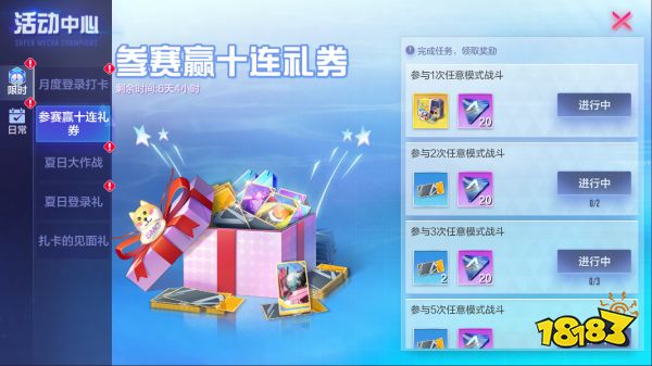 累计完成10场任意比赛,即可领取十份幸运礼券!