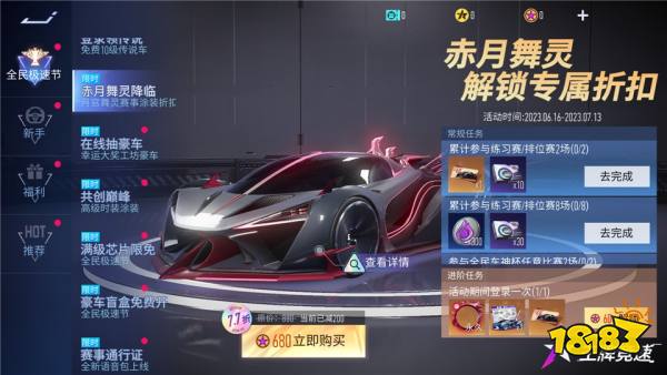 在极速节和车神杯全力冲刺,创造辉煌的同时,车手们也可以在共创巅峰活动中,通过累计登录或完成每日任务获取巅峰徽章,用它兑换金耀时装、擎天惊雷涂装等稀有奖励。