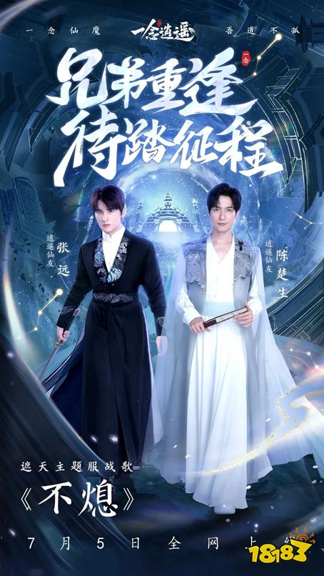 陈楚生、张远两位华语实力歌手将化身逍遥仙友,与大家一同征战7月5日开放的遮天主题服,重拾修炼初心,再登仙路之巅。陈楚生与张远曾在07年《快乐男声》脱颖而出,拥有多首热门单曲,此番来到逍遥修真界,他们也准备了一首超燃的主题服战歌——《不熄》!