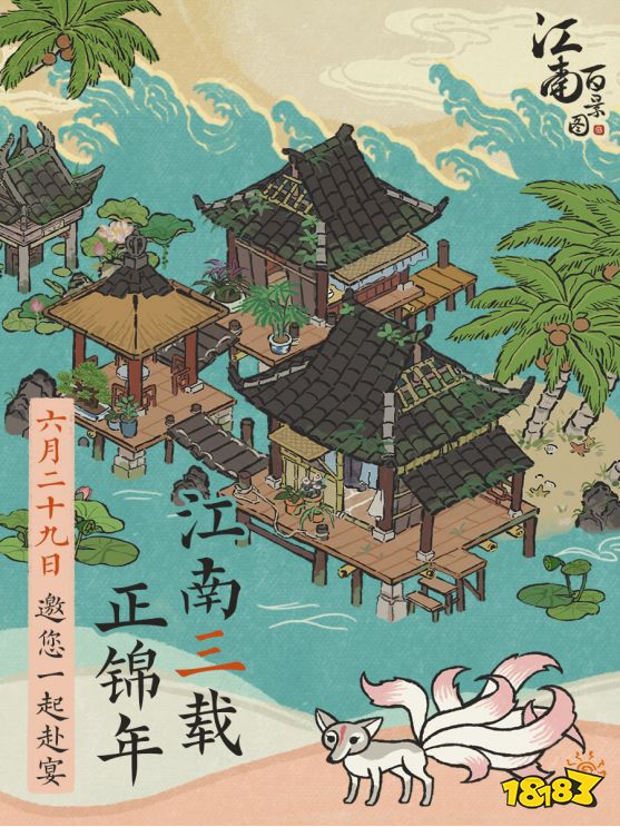 7月2日起,《江南百景图》正式开启「三周年庆典」——结伴闯关双人探险「鲤跃记」,前往「椰子岛」共赴盛宴,解锁「三周年限定福利」、翻阅「三周年府志」,还有各式全新建筑不容错过。