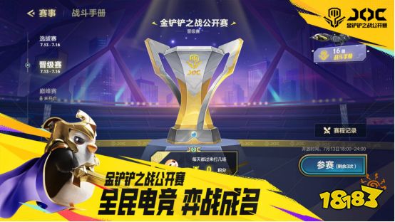 属于广大弈士的超级盛宴,第三届金铲铲之战公开赛(JOC3)已经于7月6日起正式揭开战幕!作为由《金铲铲之战》游戏官方主办的高水平竞技赛事,JOC3现在正面向全体弈士发出邀请,为来自民间的高手们提供同台竞技的舞台。