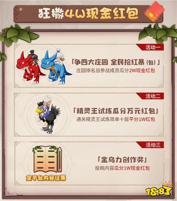 随着《石器时代:觉醒》首测开启,相关福利活动同步启航!庄园大战瓜分20000元现金奖励,完成精灵王初级试炼再分10000元现金红包;金乌力创作征集活动同样有10000元现金红包等你来;石器大神团长期招募资深玩家作者,投稿获得积分兑换京东卡、游戏道具,助力角色成长。