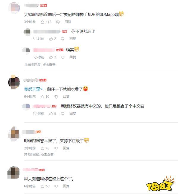 视频内言论一出,立刻引发了玩家群体们的强烈排斥与声讨。然而,也有玩家在评论区科普,这似乎并非是修改器作者“风大”本人的意见,目前收费的这一版本软件是国内3dm方面制作的整合版,而作者”风大”本人的官网仍有免费的修改器版本可以随意下载,导致评论区不少玩家进而对收费3dm版本修改器发表怒斥以及各种讽刺言论。