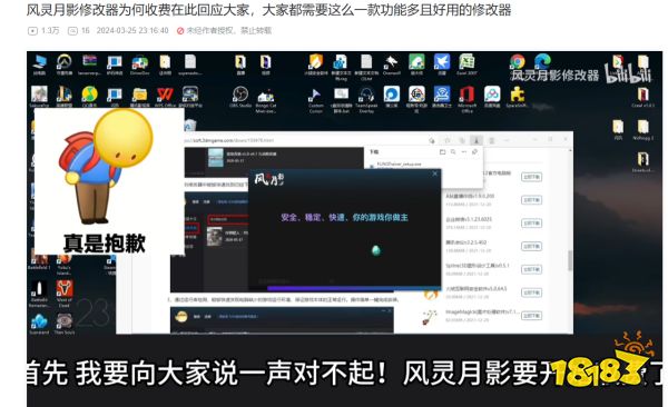 昨日(3月25日),有网友发现知名的游戏修改器软件”风灵月影”改为收费制,引发玩家们的热议。而就在昨晚,b站的”风灵月影修改器账号”发布视频,宣布未来修改器将改为收费制,目前具体价格还未确定,希望听取玩家的反馈意见后再决定,并呼吁玩家不要去假冒店铺购买修改器。