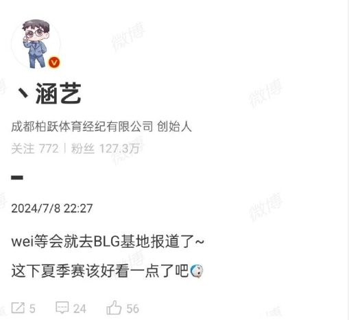 【JR投稿】涵艺爆料:“wei等会就去BLG基地报道了~这下夏季赛该好看一点了吧