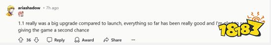 另一位网友评论道:“1.1版本相较于刚发布时确实是一个巨大的提升,目前的一切都非常好,我很高兴看到中国玩家重新给了这款游戏一个机会。”