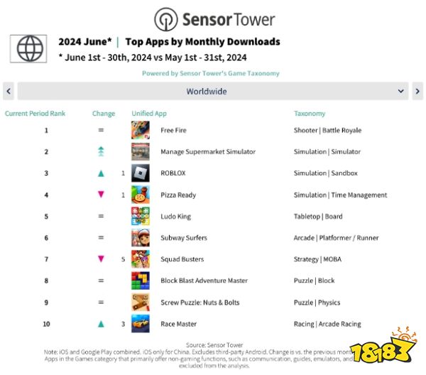 6月,由Garena发行的战术竞技游戏《Free Fire》蝉联全球手游下载榜冠军。该游戏自2017年9月发布以来,全球下载量近16.6亿次,主要市场包括印度、巴西、印度尼西亚、越南和墨西哥。MOBA新秀《Squad Busters》位列第7名,全球收入超过4500万美元,下载量近5100万次。