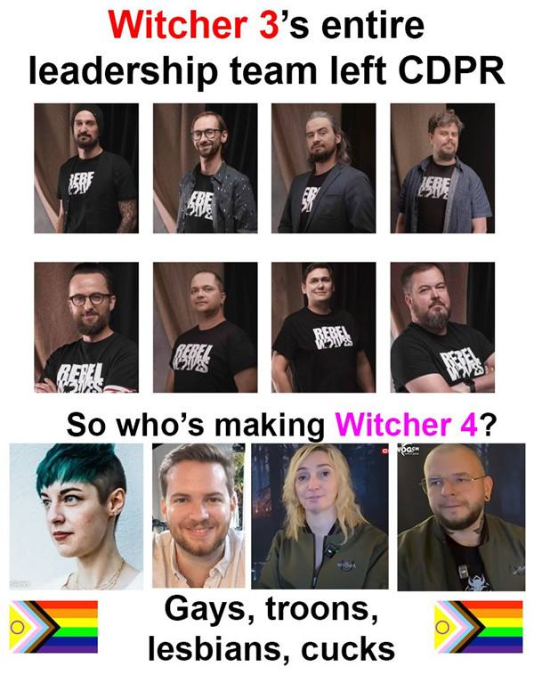 2021年《巫师3》游戏总监Konrad Tomaszkiewicz出走CDPR(出走前被指控职场霸凌),同时还带走了大量高级开发者,包括《巫师3》《赛博朋克2077》游戏编剧Jakub Szamałek、《巫师3》美术总监Bartłomiej Gaweł等。2022年这一伙人成立了新工作室Rebel Wolves。