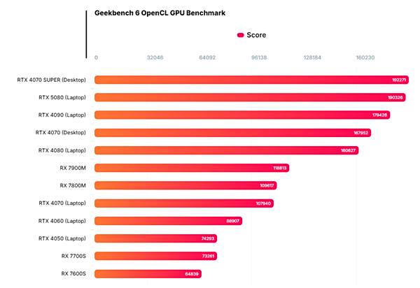 尽管OpenCL测试对于游戏玩家的直接参考价值有限,但这一数据无疑为我们提供了RTX 5080移动版显卡性能的初步参考。