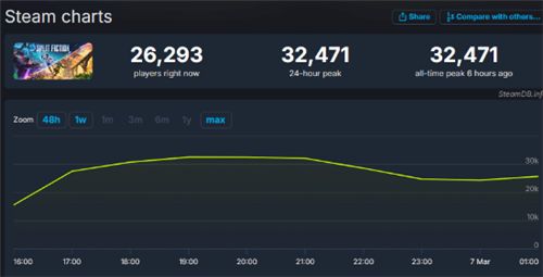 《双人成行》厂商制作的全新合作冒险游戏《双影奇境》现已正式发售,截止发稿,游戏在PC Steam平台收录633篇玩家评测,好评率高达96%(好评如潮)。热度方面,游戏上线十小时,并发峰值人数超过3.2万人。