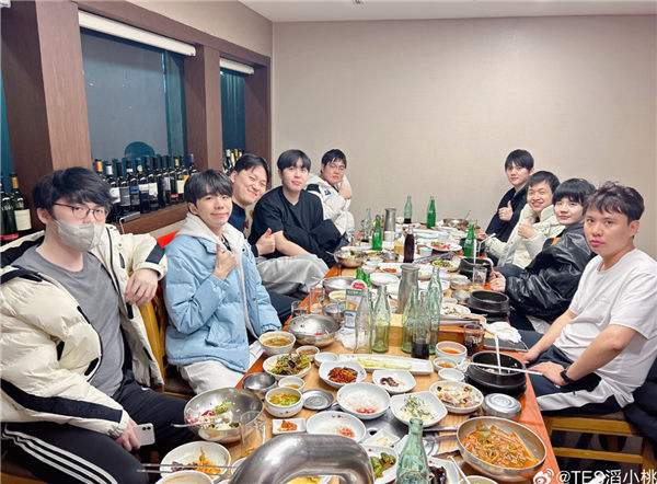 抵达首尔后,战队选择当地一家人均消费超 400 元人民币的知名韩料店聚餐,费用由打野选手 Kanavi 主动承担。席间众人举杯的轻松氛围,与训练室里的紧张备战形成鲜明对比。值得一提的是,Kanavi 在便利店采购时继续展现 "徐代表" 风范,主动刷信用卡为队友买单,这种 "队内 ATM" 的角色定位,正是 TES 团队凝聚力的缩影。
