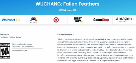 近日,游戏《明末:渊虚之羽》成功通过ESRB评级,被归类为适合17岁及以上玩家的“M”级(成人级)。