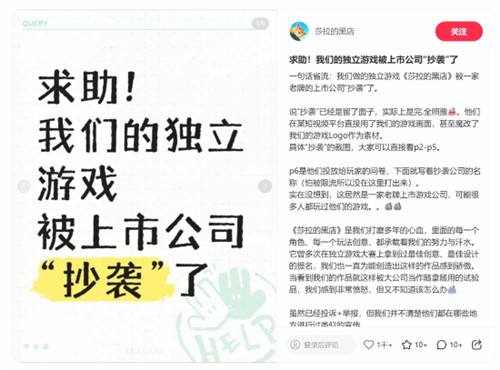 独立游戏《莎拉的黑店》的开发团队在社交媒体上发布了一则求助信息,称他们的游戏被一家上市公司“抄袭”,这家公司为北京畅游时代数码技术有限公司。
