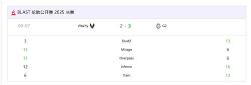 在BLAST伦敦公开赛总决赛中,G2上演了一场令人震惊的逆转好戏,在1-2落后的不利局面下连扳两图,最终以3-2击败夺冠热门Vitality,捧起冠军奖杯。