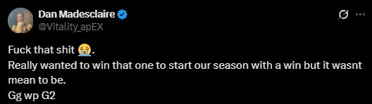 在BLAST伦敦公开赛决赛2-3惜败G2后,Vitality选手们在个人社交媒体上分享了他们对这场失利的感受,展现出失望但积极的态度。