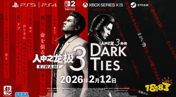 在今日举办的“RGG SUMMIT 2025”发布会上,如龙工作室正式公布了《如龙 极3》以及以人气角色峰义孝为主角的外传作品《如龙3外传 DARK TIES》。两款作品将以合集形式于2026年2月12日同步登陆PS5、PS4、Switch2、Xbox及PC平台,Steam国区标准版售价268元,豪华版售价338元。