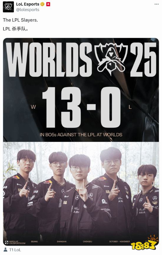 自从S11的EDG之后,LPL已经连续四年无缘总冠军。更扎心的是,S13、S14两年决赛都是T1亲手送走LPL队伍,今年淘汰赛的AL和TES也同样倒在T1手下。Faker在S赛BO5中对LPL的战绩,已经来到恐怖的13:0!从S3至今未尝一败,连官方都玩梗称其为“LPL杀手”……