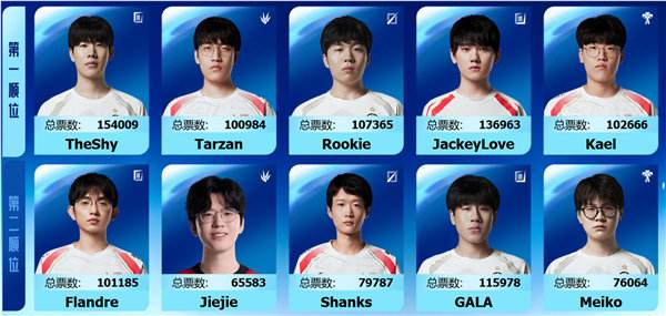 另一个引发热议的话题是 “韩援首发占比”:5 个位置的票数第一中 4 位是韩援,这让部分网友质疑 “LPL 成韩国人赛区”。但更多理性声音认为,投票结果本质是实力与口碑的体现,像 Tarzan、Kael 等韩援,在对阵 LCK 队伍时往往拼劲十足,展现出不亚于国产选手的赛区归属感,他们的高票数是观众对其兢兢业业表现的认可。而且每个位置的第二名均为国产选手,最终 10 名参赛选手预计将是 6 国产 + 4 韩援的配置,兼顾了实力与多样性,无需过度纠结于国籍。