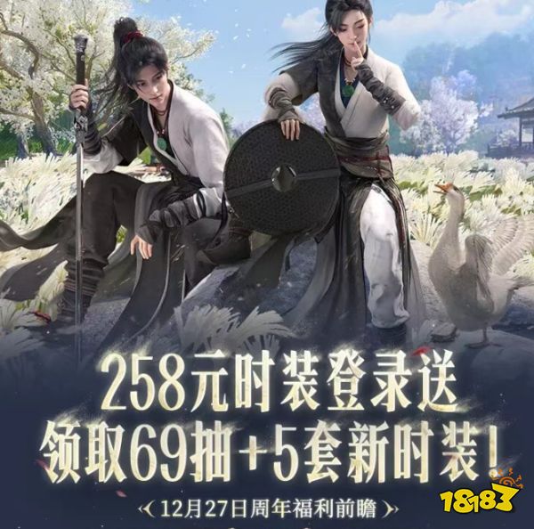 《燕云十六声》迎来上线一周年,自 2025 年 12 月 27 日起开启以「饮马渡秋水」为主题的周年庆版本。本次活动在内容和福利上都颇为慷慨。登录就送价值 258 元的时装自选,参与玩法还能拿到合计 69 抽的道具资源。
